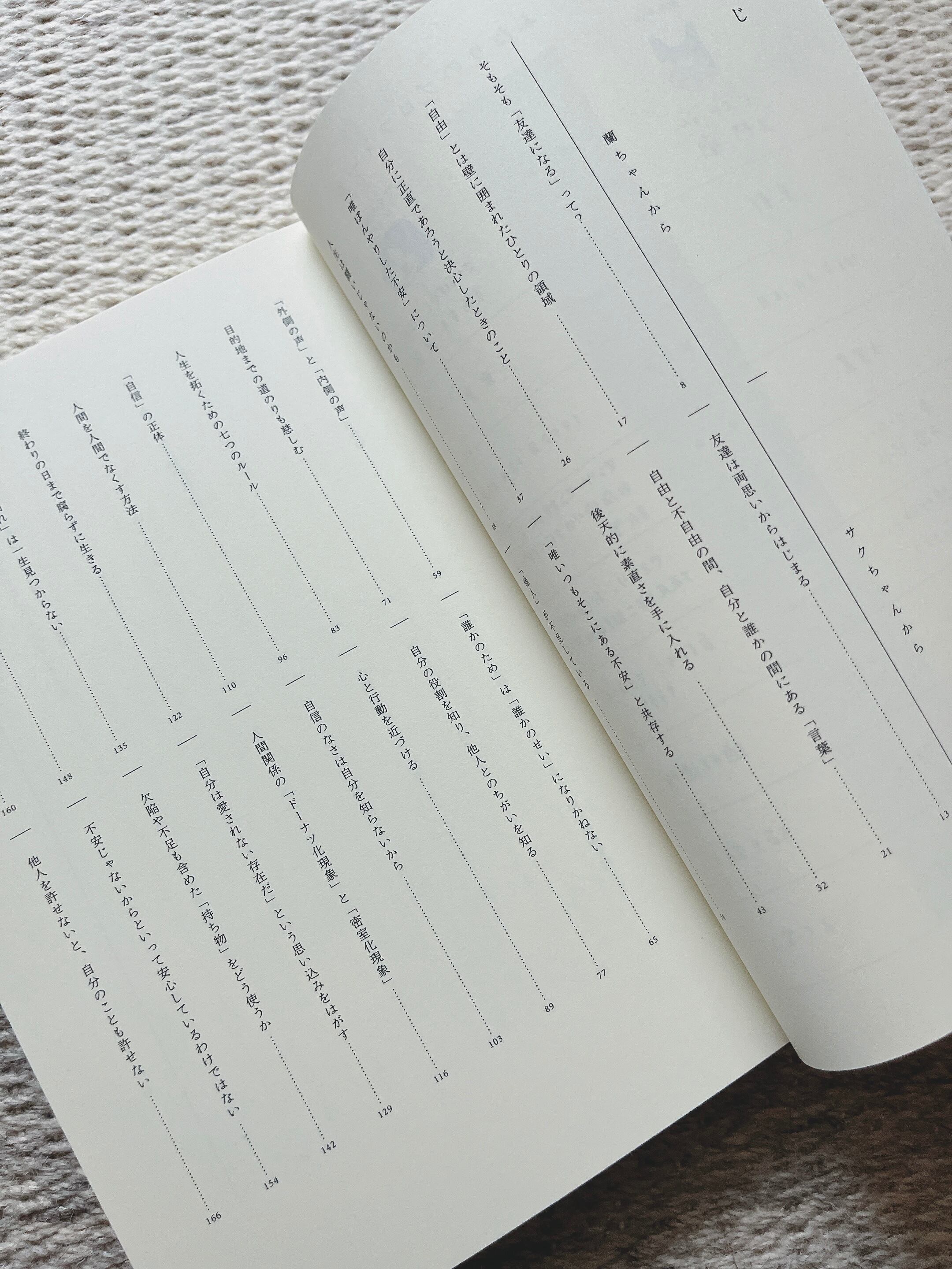 「そもそも」から生まれる疑問に対して、ふたりはその問いを深く見つめる。そして、見つめ続けた先にある答えがどうであれ、ふたりはそれを自分の言葉にして表現する。読者はふたりの思考の一部始終をいっしょにたどることで、自分が欲しかった言葉に出合えるかもしれない。あなたがこれからの人生を生きていくうえで、お守りのような存在になる一冊。